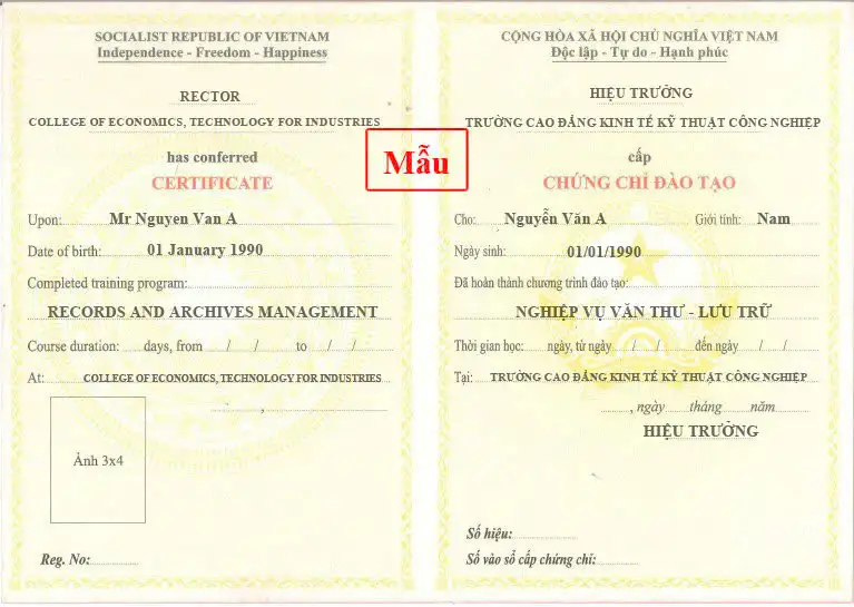 → Chứng chỉ: sau khi hoàn thành khóa học, những học viên đạt yêu cầu được cấp chứng chỉ đào tạo Nghiệp vụ văn thư lưu trữ theo quy định của Bộ Lao động Thương binh và Xã hội.